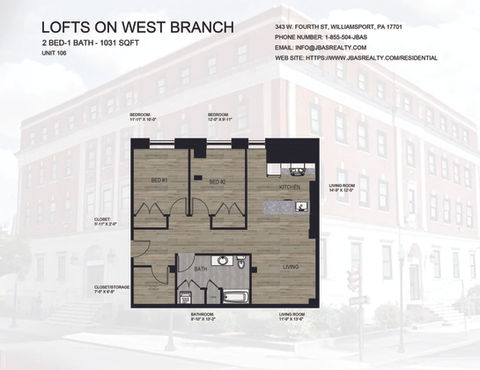 343 West Branch includes units ranging from 700-square-foot studios to two-bedroom apartments up to 1,600 square feet. Built in 1923, the building originally served as a YMCA dormitory and sits at the gateway to historic Williamsport.